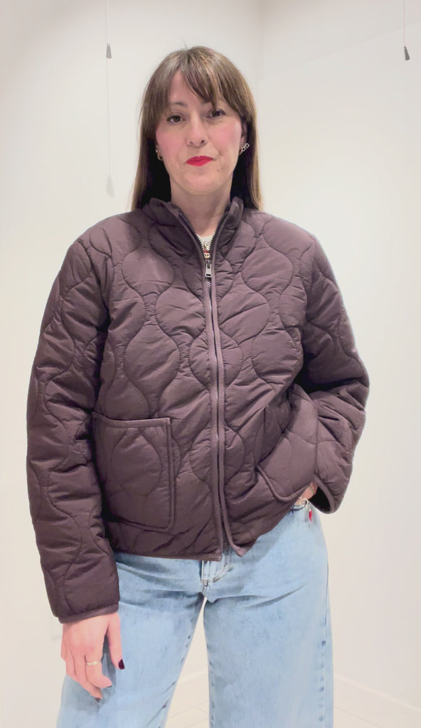 Giacca trapuntata in tessuto di nylon idrorepellente. Collo a fascetta, zip frontale e tasche applicate.